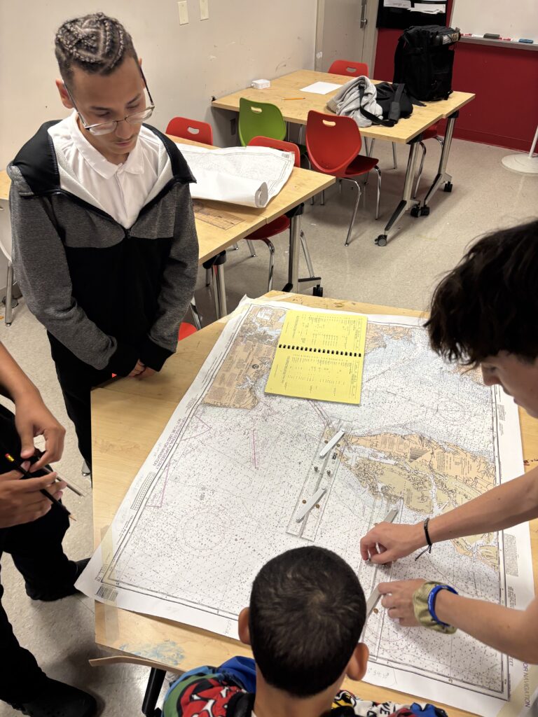 This Fall, members of the Davis Maritime Club took on the challenge of learning to read paper maritime charts. Understanding maritime charts is crucial and is an important foundation for any good captain. Students used their understanding of longitude and latitude to plot points with the coordinates they were provided. Students will continue to develop their skills through seamanship classes and after-school programming.