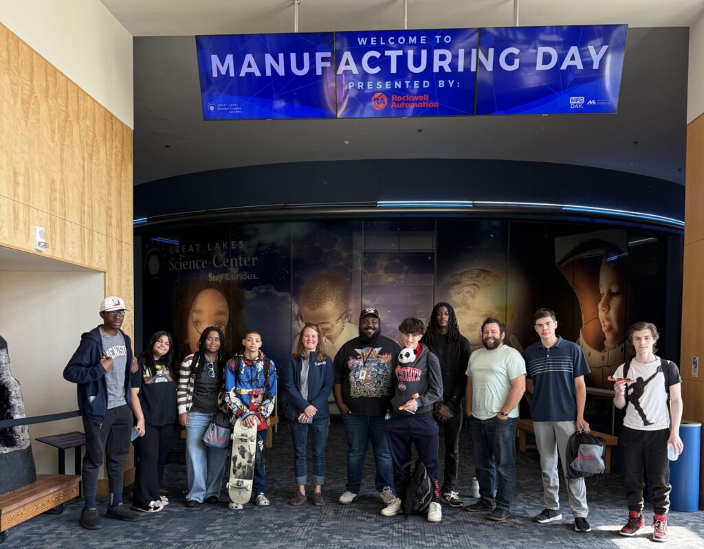 In October, our 11th and 12th graders attended Manufacturing Day at the Great Lakes Science Center—an annual national event that introduces students to modern manufacturing careers, technologies, and workforce pathways. During the visit, students explored interactive exhibits, met industry professionals, and learned how advanced manufacturing blends engineering, robotics, and innovation to power real-world industries. Our students also participated in hands-on demonstrations, giving them a deeper understanding of how their Fab Lab skills translate into high-demand career fields.