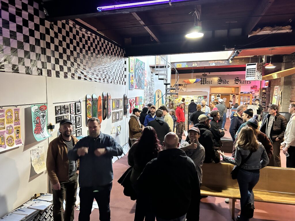 The event featured an art show and auction with one-of-a-kind pieces created by local skaters and artists. Guests had the chance to bid on original works, including custom skateboard decks, while also supporting the club through the purchase of T-shirts and hats.