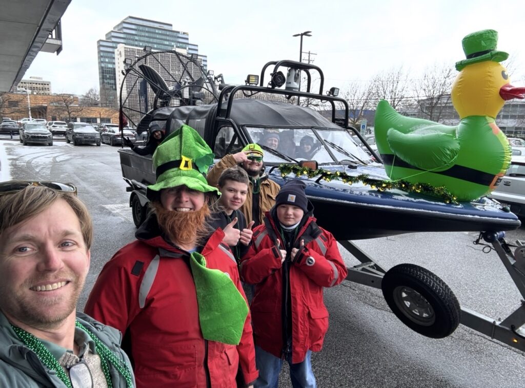 Braving cold, snow, and windy weather, Argonaut and a team of Davis A&M students came together to participate in the annual St. Patrick’s Day parade. The students decorated Argonaut’s new PHASTAR airboat with Argonaut’s flags and other St. Patrick’s Day decorations. Despite the weather, it was a great day for the students, spectators, and all involved with the parade.